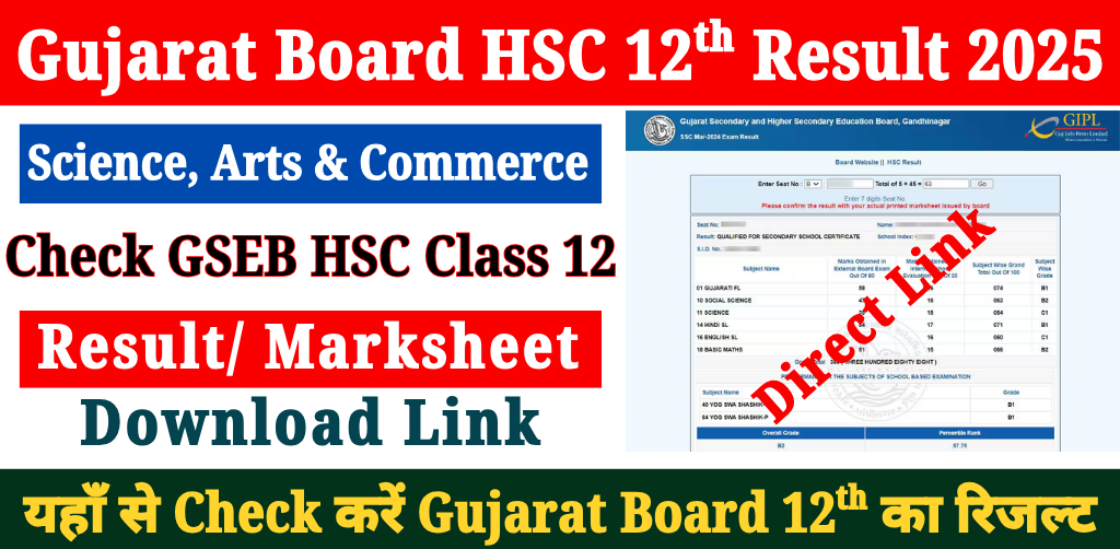 Gujarat Board HSC 12th Class Result 2025 : The Gujarat Secondary and Higher Secondary Education Board (GSEB) will be released soon GSEB HSC Result 2025 on its official website of GSEB at gseb.org and its direct link to check 12th class result available soon. As per latest update Gujarat Board Result 2025 12th Class will be released in the last week of April 2025 and you can check your result with the help of seat number, roll number or other details when it is declared. All students can Check GSEB HSC 12th Result 2025 as per their stream science, arts or commerce from the official website of GSEB at gseb.org OR the direct link given below.